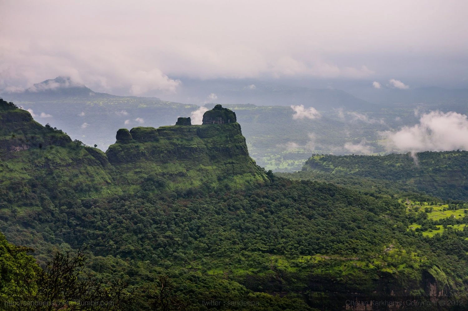 The trek usually begins from Khandas village, which serves as the base point for both major routes. The Ganesh Ghat trail provides a longer but safer path through gradual forest ascents and open slopes. In contrast, the Shidi Ghat route involves steeper climbs and sections where ladders are used to negotiate rocky cliffs. Trekkers often ascend via Shidi Ghat for adventure and descend through Ganesh Ghat for a more comfortable return. Both routes pass through dense vegetation and offer glimpses of local wildlife typical of the Western Ghats ecosystem.