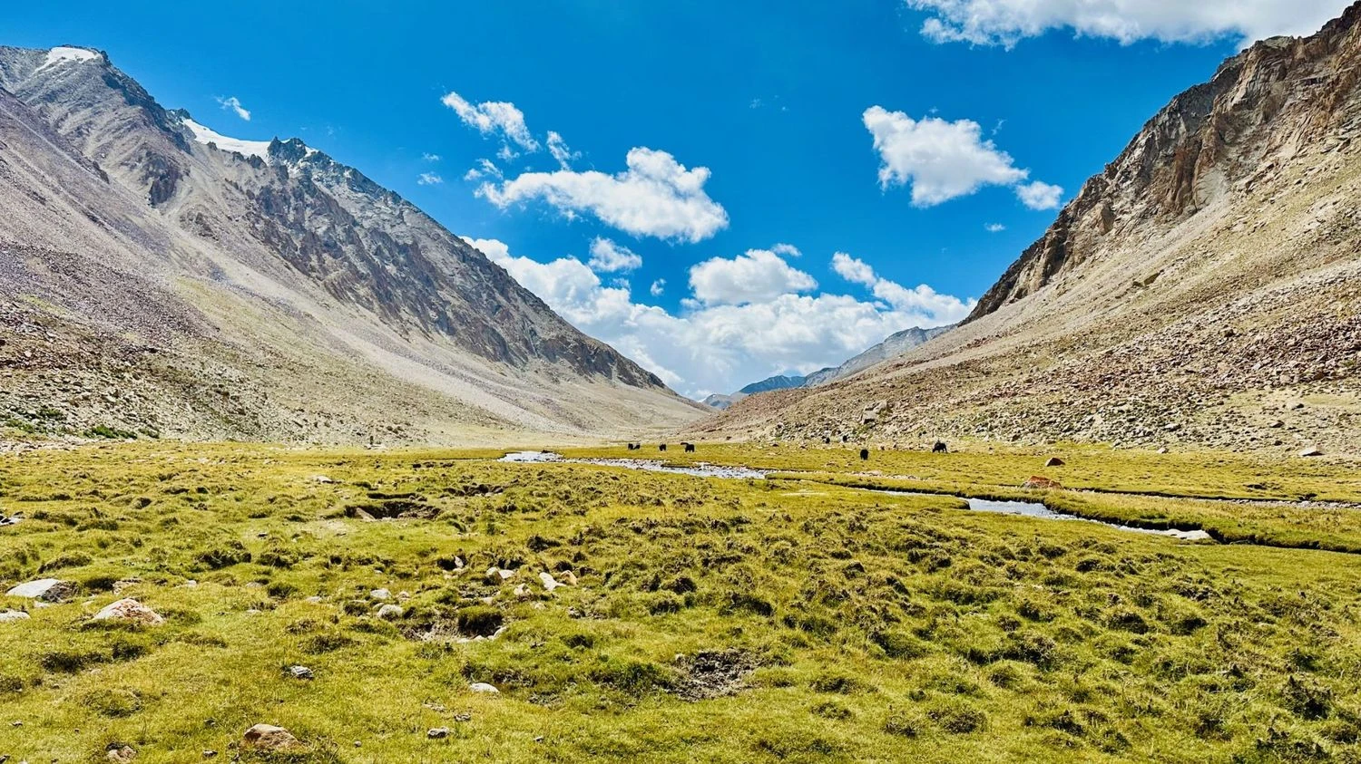 Nubra is famously called the “Valley of Flowers” of Ladakh and is unique for its cold desert terrain. With sand dunes, orchards, and meadows surrounded by towering mountains, Nubra offers a surreal mix of landscapes rarely found elsewhere in the Himalayas.